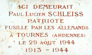 SCHLEISS, fusillé à Tournes ( Ardennes ),