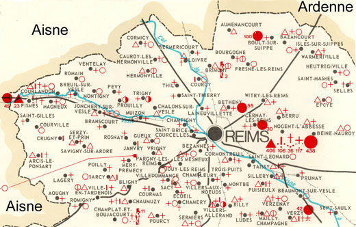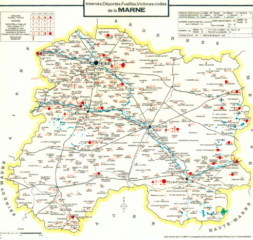 | Enseigner la mémoire ? > Histoire et mémoire de la déportation > Marne - CA > La carte de la souffrance-Marne | |