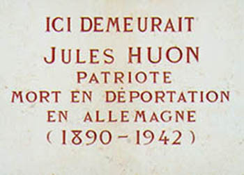 Ancien combattant de la 1ère guerre mondiale, militant de l'Association républicaine des anciens combattants (ARAC) et sympathisant communiste, Jules HUON, il a été arrêté à la suite d'une distribution de tracts en décembre 1940, par la police française aux ordres du préfet René BOUSQUET, et condamné à huit mois de prison par un tribunal français.