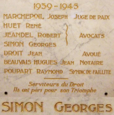 Le nom de Georges SIMON figure également sur la plaque commémorative apposée dans le hall du Palais de Justice de Reims.