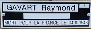 Ouvrier agricole à Monthois dans les Ardennes, Raymond GAVART faisait partie des résistants ardennais qui fournissaient des explosifs au groupe rémois de Jean MARTIN. Arrêté en février 1943 par la police française pour activité communiste et détention d’armes, il a été livré aux autorités allemandes. Condamné à mort le 22 septembre par le tribunal militaire allemand de Châlons-sur-Marne, il a été fusillé le 4 octobre 1943. Il avait 21 ans.