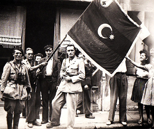 Le drapeau de la Légion SS d'Azerbaïdjan pris à l'ennemi par la Groupe franc « Raymond »
