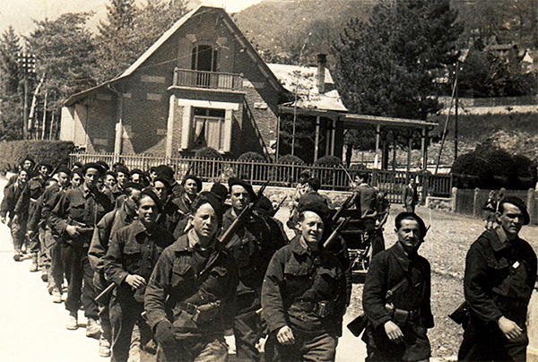 (Au premier rang à gauche, le sergent Henri Carminati porte un fusil-mitrailleur)