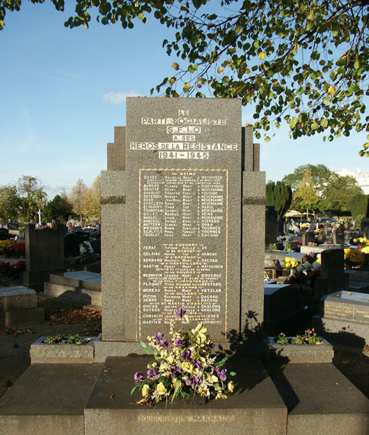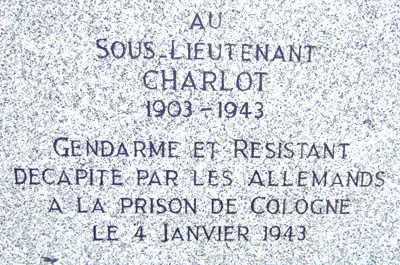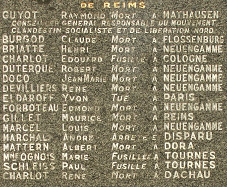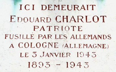 Le nom d'Édouard CHARLOT est gravé aussi sur la stèle élevée également en 1947 au Cimetière du Nord à Reims par la fédération marnaise du Parti socialiste SFIO « À ses héros de la Résistance 1941-1945 » avec la même mention « fusillé à Cologne »...