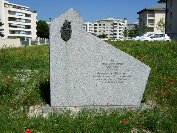 À Reims, après une enquête menée en 1984 par le Lieutenant-colonel SALLAZ, une stèle a été élevée à la mémoire du sous-lieutenant CHARLOT qui rectifie les erreurs concernant la date de sa naissance et les conditions de son exécution en Allemagne, figurant sur la plaque commémorative érigée sur le mur extérieur de la caserne du boulevard Robespierre et sur le Monument du cimetière de l'Est.