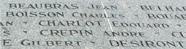 Le nom d'Édouard CHARLOT est également inscrit sur le Monument aux morts de Châtillon-sur-Marne, commune où il est né.
