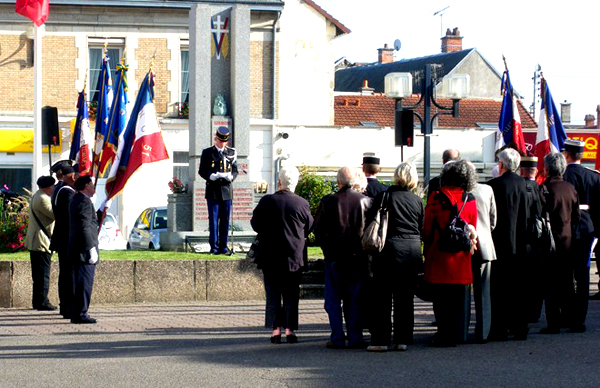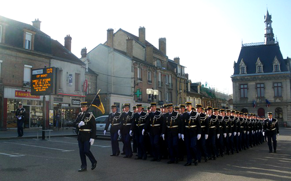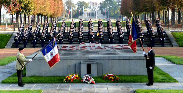 Gerbes de fleurs et plaque commémorative déposées par les élèves-gendarmes