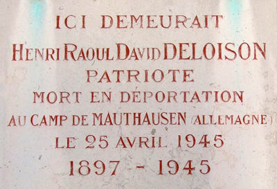 Plaque apposée en 1947 au domicile d'Henri Deloison