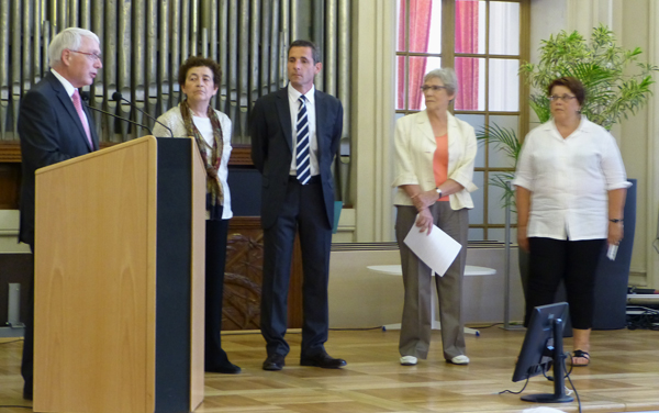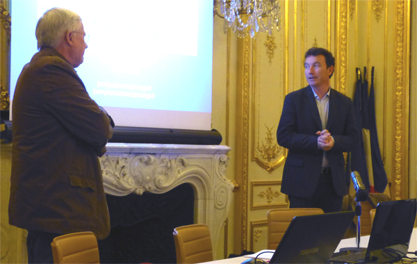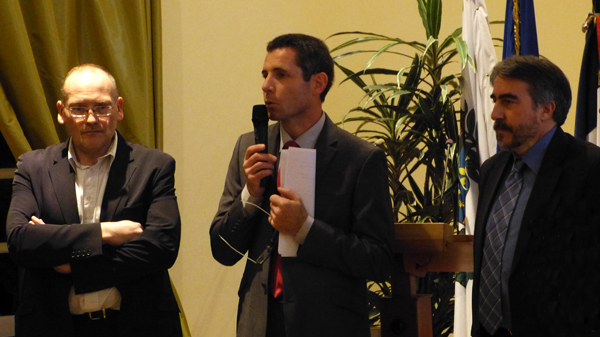 Jean-Claude Laval, maire-adjoint de Reims, accueille les intervenants ( de gauche à droite ) :