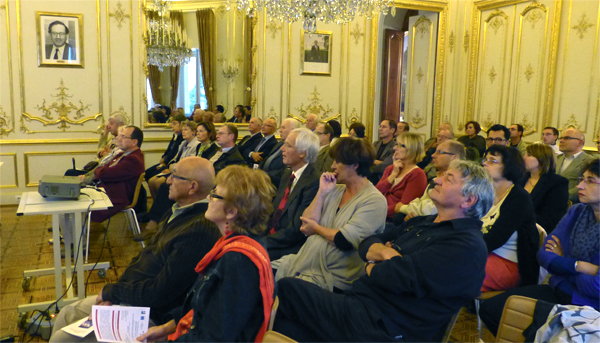 La présentation du dévédérom à Épernay le 1er octobre 2013 s'est déroulée dans les Salons de l'Hôtel de Ville sous la présidence du maire, Franck LEROY, en présence d'Yvette LUNDY, déportée à Ravensbrück,
