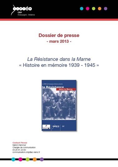 Le dévédérom La Résistance dans la Marne a été présenté officiellement le 30 janvier 2013 à Châlons-en-Champagne, chef-lieu du département de la Marne, à l'occasion de la labellisation « Bleuet de France » de l'EPHAD Sarrail, en présence de Marie-Claire NOSSOVITCH, directrice générale adjointe de l'Office national des anciens combattants et victimes de guerre (ONACVG) et de Laurence THIBAULT, directrice de l'Association pour des Études sur la Résistance intérieure (AERI) - Département de la Fondation de la Résistance.