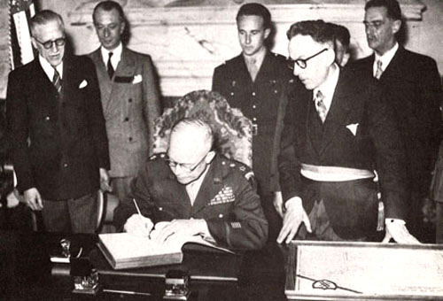 et Pierre Schneiter, sous-préfet de Reims, en partie dissimulé derrière Eisenhower,