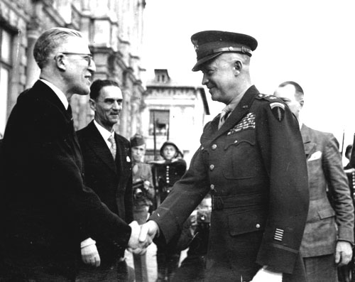 accueille le général Eisenhower, commandant suprême du Corps expéditionnaire allié en Europe