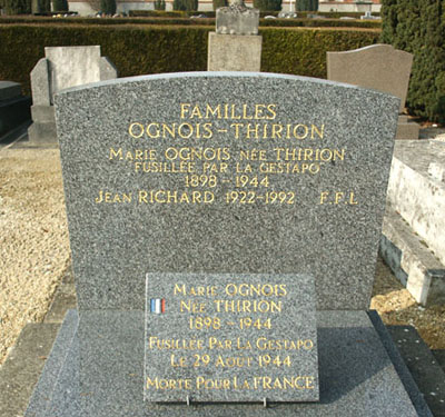 commandant Bouchez chef départemental des FFI de la Marne Marie-thérèse OGNOIS a été inhumée au Cimetière de l'Est, Paul SCHLEISS et André SCHNEITER ont été inhumés au Cimetière du Nord.