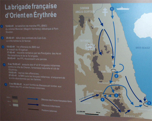 La Brigade française d'Orient en Érythrée Ces ralliements vont renforcer les effectifs des Français libres participant aux combats en Afrique. La 1ère Brigade française dOrient ( BFO ) forte de 8 000 hommes sous les ordres du Colonel Monclar va se battre en Erythrée et obtenir à Kub Kub et Massaouah ses premières victoires.