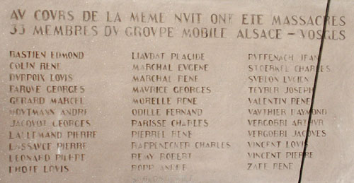 liste des 33 membres du Groupe mobile Alsace-Vosges exécutés