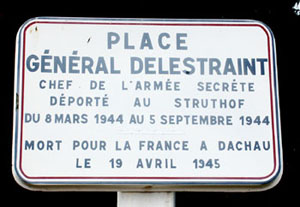 La Place général Delestraint La place où est implantée la billeterie et qui donne accès à l'entrée du camp du Struthof porte depuis 1985 le nom du général DELESTRAINT, chef de l'Armée secrète, déporté au camp de Natzweiler-Struthof en mars 1943.