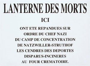 En contrebas, à gauche de la place du général Delestraint, a été implantée face aux barbelés du camp, à l'emplacement où ont été répandues par les nazis les cendres des déportés incinérés dans le four crématoire du camp, la Lanterne des morts.