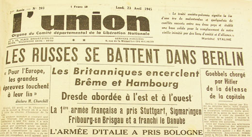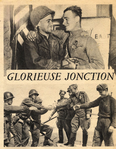 les faubourgs de Berlin le 21 avril et les troupes anglo-saxonnes et soviétiques ont opéré leur jonction à Torgaü sur l'Elbe le 25 avril.