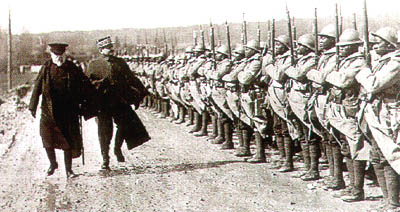 passent en revue un régiment de tirailleurs sénégalais