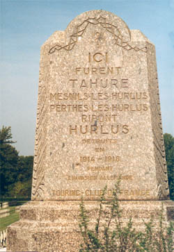 Sur les quatre faces du socle sont gravés les noms et les plans des villages de Perthes-les-Hurlus, Mesnil-les-Hurlus, Tahure et Hurlus.