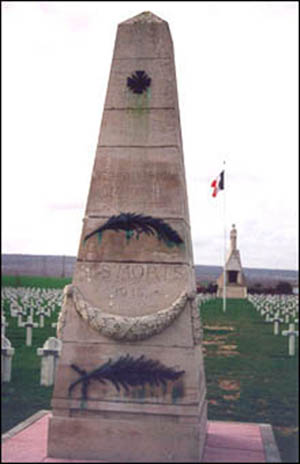 En souvenir des régiments qui ont tenu le secteur, un petit obélisque a été érigé au centre de la nécropole, qui porte sur ses quatre côtés les inscriptions gravées dans la pierre :