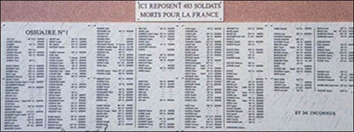 - à droite, dans l'ossuaire n° 2 ont été inhumés les corps de 5 065 soldats dont 4 827 soldats inconnus.