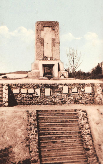 On accédait par un escalier au monument qui surplombait la route. Les familles des soldats tués dans ce secteur y venaient en pèlerinage et accrochaient sur le muret dressé au pied du monument des plaques commémoratives et des ex-votos.