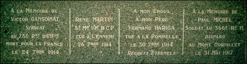 Aujourd’hui les ex-votos et les plaques déposées au lendemain de la guerre 14-18 ont disparu. Elles ont été remplacés par des plaques de marbre scellées à la base du monument lui-même.