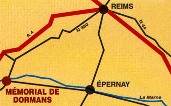 Le Mémorial a été implanté au milieu des vignes sur un coteau dominant la ville de Dormans et la rivière Marne, un site choisi après la 1ère guerre mondiale par le Maréchal FOCH, pour commémorer les deux batailles de la Marne. La 1ère bataille de la Marne - Septembre 1914