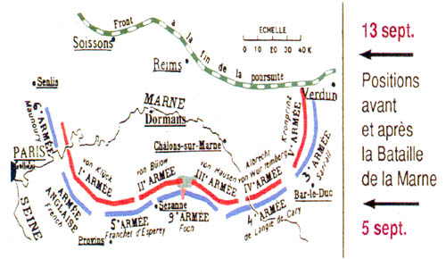 La première bataille de la Marne a permis en septembre 1914 de sauver Paris, de libérer Reims et de repousser les Allemands sur l'Aisne. La 2e Bataille de la Marne - Juillet-Août 1918