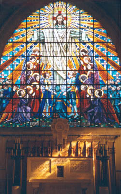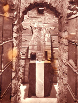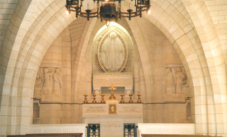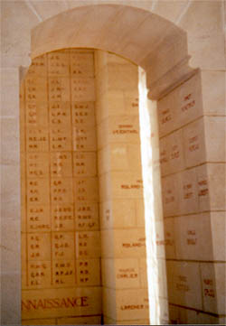 La crypte commémore les morts de la 1ère guerre mondiale dont les noms ou les initiales sont gravés en lettres rouges sur la pierre claire.