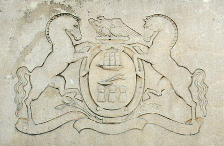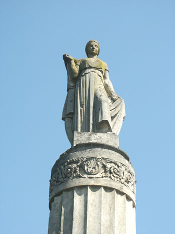 La dédicace en français gravé sur le socle de la colonne de gauche