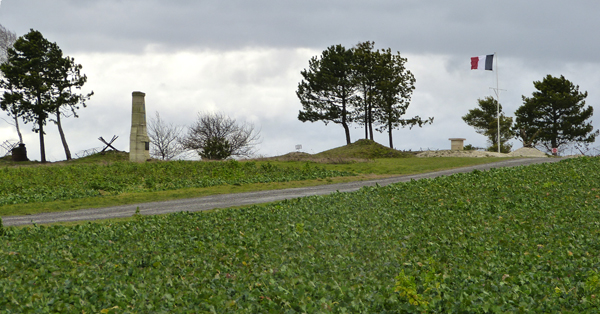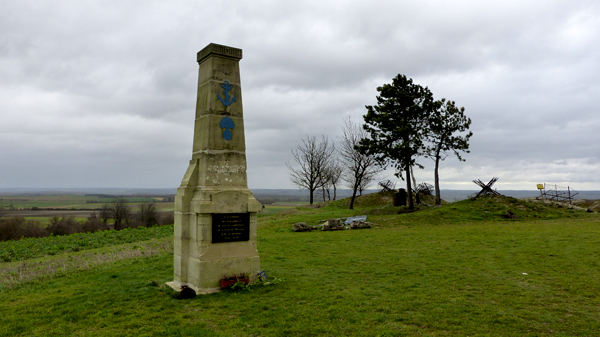 Le site photographié en février 2014 On accède à La Main de Massiges par la D 566, puis en prenant sur la droite un chemin de terre qui monte sur le plateau.