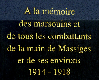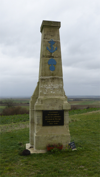 Le monument-pilastre« À la mémoire des marsouins et de tous les combattants de la main de Massiges et de ses environs » a été remonté. Le monument aux Marsouins de la Main de Massiges