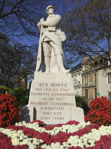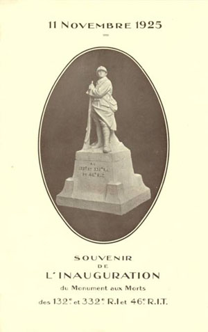 À la dédicace de 1925 « Aux morts des 132e et 332e Régiments d'infanterie et du 46e Régiment territorial d'infanterie » a été ajoutée après la 2e guerre mondiale l’inscription « 132e RIF - 1939-1945 ».