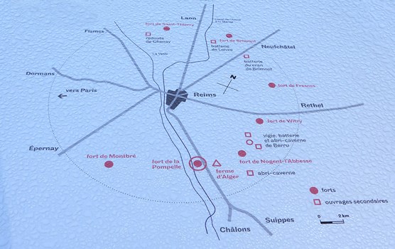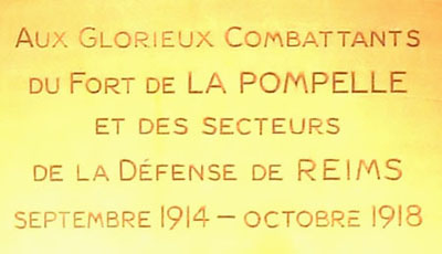 Le Fort de la Pompelle, construit au début des années 1880 pour compléter la ceinture fortifiée de Reims conçue par le Général SÉRÉ DE RIVIÈRES après la guerre de 1870, est le seul fort qui est resté aux mains des Français durant la 1ère guerre mondiale, assurant la défense de Reims jusqu'à la victoire de 1918. Les vestiges du Fort de la Pompelle se dressent sur le bord la RN 44 à environ 5 kilomètres de Reims en direction de Châlons-en-Champagne, en face du Monument du Souvenir français érigé au lendemain de la 1ère guerre mondiale, auquel il est relié par un passage souterrain permettant de franchir la route nationale qui les sépare.