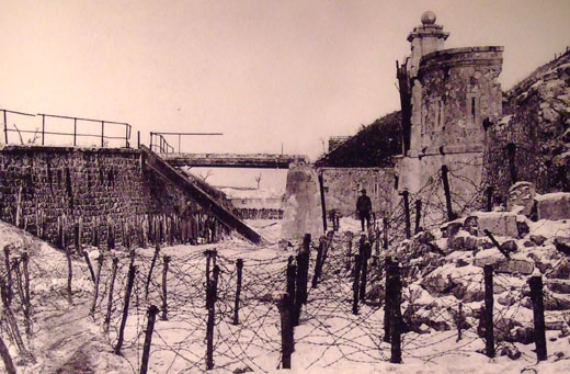 La passerelle donnant accès à l'entrée du fort de la Pompelle en 1916