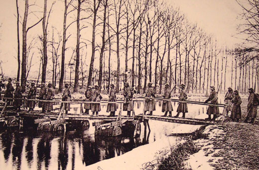 Un détachement de soldats russes traversent le canal