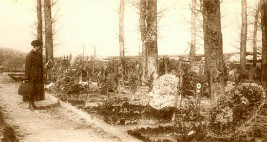 Tombes provisoires dans le secteur du Fort de la Pompelle au lendemain du conflit