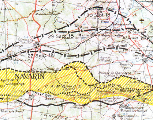 De septembre 1914 à septembre 1918, dans le département de la Marne, entre Reims et la Forêt d'Argonne, se sont livrés des combats acharnés opposant les troupes allemandes aux troupes alliées (françaises, russes, américaine ).