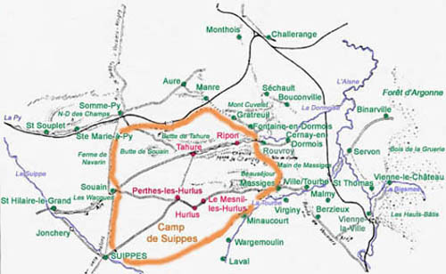 Les sites des villages de Perthes-les-Hurlus, Hurlus, Le Mesnil-les-Hurlus, Ripont et Tahure tous situés dans le périmètre du Camp de Suippes, au Nord-Est de Châlons-en-Champagne et aux confins des Ardennes, ne sont accessibles qu'une fois tous les deux ans, début septembre, à l'occasion de la journée du souvenir organisée par l'autorité militaire.