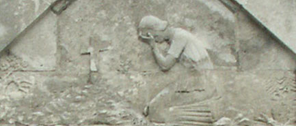 Une femme à genoux et en pleurs au-dessus d'une sépulture