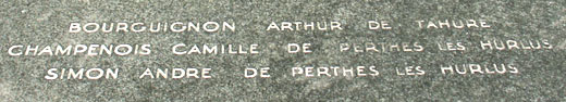 Sur les quatre faces du socle sont gravés les noms et les plans des villages de Perthes-les-Hurlus, Mesnil-les-Hurlus, Tahure et Hurlus.