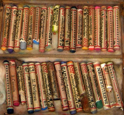 La boîte de pastels utilisée par Charles Pichon ( Images numérisées communiquées par Pedro Sayol
