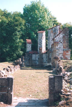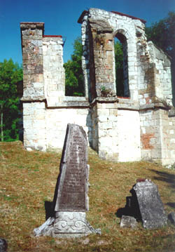 Les vestiges de l'église Il n'en subsiste plus aujourd'hui que quelques pans de murs en pierres blanches entourés de pierres tombales.