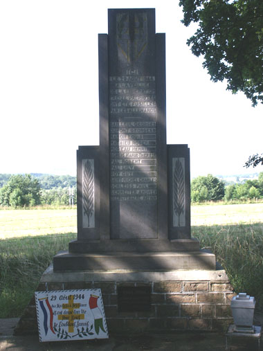 Érigé à l'initiative de la commune, en faisant appel à une souscription publique, ce monument est l'œuvre du sculpteur rémois Gustave MAILY. Il se dresse à l'orée du Bois de la Rosière, le dos à la route nationale, sur les lieux-mêmes du massacre, où avait été élevé après la Libération un monument provisoire constitué d'une Croix de Lorraine en bois.