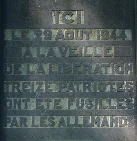 exécutés par les nazis au Bois de la Rosière le 29 août 1944