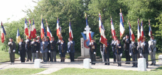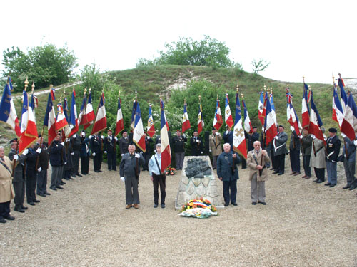 Au premier plan, Jean Chabaud, président des CVR de la Marne, Le 6 juin 2004, le préfet de la Marne a présidé sur ce site la commémoration du 60e anniversaire du débarquement de Normandie, en souvenir des 7 résistants dont 5 Rémois, qui y ont été fusillés le 6 juin 1944. 6 juin 2004