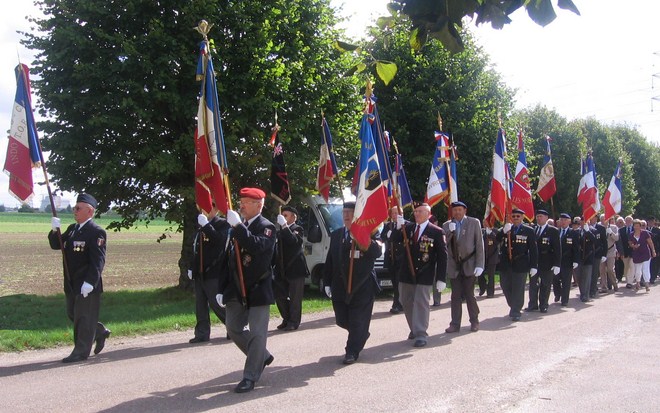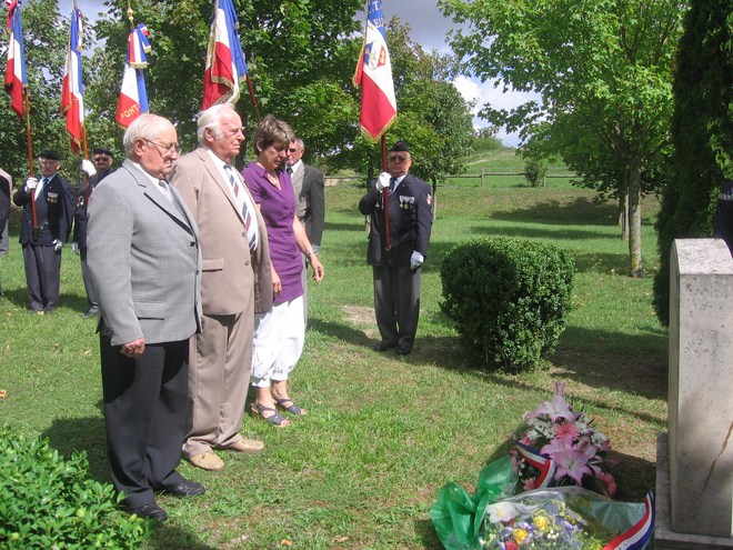 Recueillement devant la stèle du Champ de tir ( Avec l'aimable autorisation de la commune de Creney-près-Troyes ) - Dossier documentaire constitué à partir des archives de la commune de Creney, communiqué à Jocelyne et Jean-Pierre HUSSON en 2010 par Madame Bénédicte DONNER, secrétaire de gestion administrative à la mairie de Creney-près-Troyes. Remerciement à Monsieur le maire de Creney, Jacky RAGUIN.